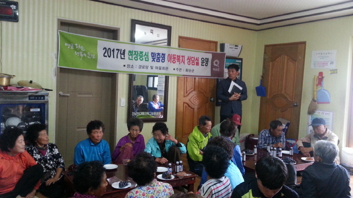 1일 화순군에 따르면 특수시책으로 4월~11월까지 8개월간 13개 읍면 마을회관과 경로당에서 현장중심 맞춤형 이동복지 상담실을 운영한다.