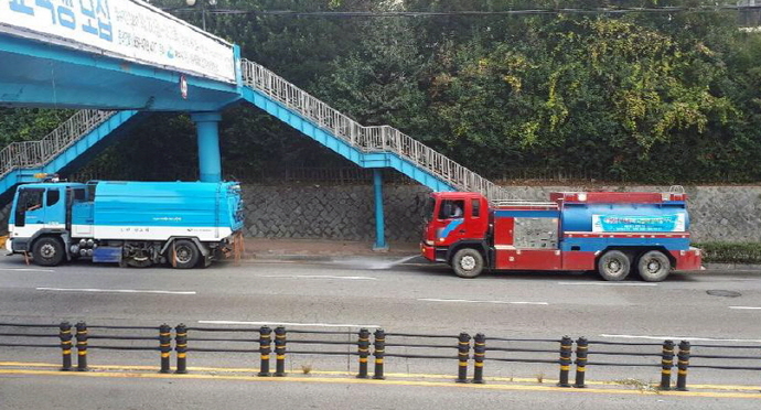 특히 시는 살수차와 여수시도시관리공단의 진공흡입청소차를 동시에 운행해 미세먼지 제거 효과를 높이고 있다.