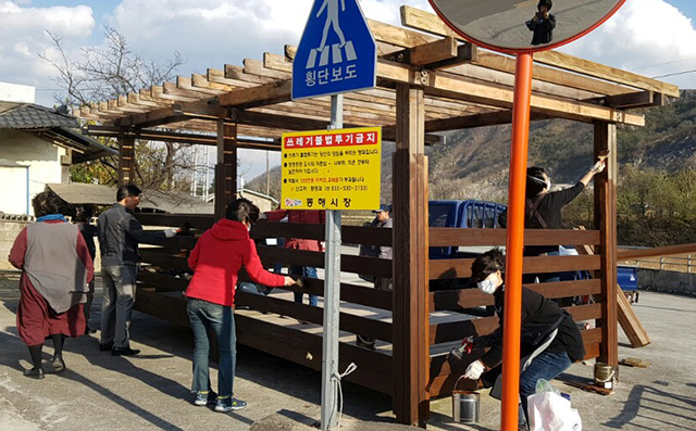 특히 교육 수강생들은 지난 9일부터 13일까지 삼화동을 찾아, 마을 쉼터 지붕을 개량하고 도색 및 의자 설치 등의 작업을 직접 수행하가며 도시 재생 디자이너로 첫 발을 내딛었다.