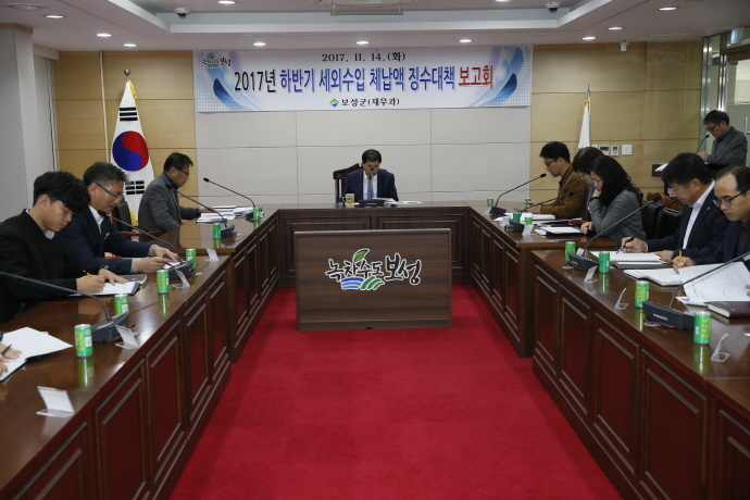 보성군은 지난 14일 군청 소회의실에서 실과소 담당계장 및 담당자 30여명이 참석한 가운데 지방재정의 안정적 재원 확충과 이월체납액 최소화를 위한 ‘2017년 하반기 세외수입 체납액 징수대책 보고회’를 개최했다.