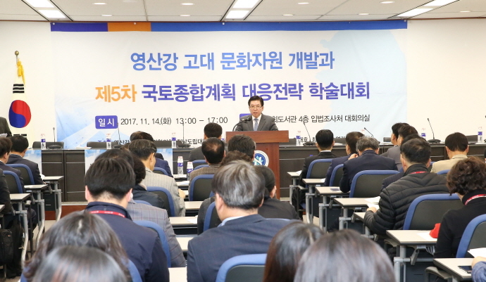 영산강 유역권 행정협의회(의장, 구충곤 화순군수)는 14일 국회도서관 입법조사처 대회의실에서 ‘영산강 고대 문화자원 개발과 제5차 국토종합계획 대응전략’ 학술대회를 열어 영산강 고대 문화자원 개발 방향을 모색했다.