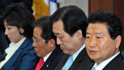 | ▲ 12일 최고위원-중진의원 연석회의에서 심각한 표정을 짓고 있는 한나라당 지도부 ⓒ뉴시스 |