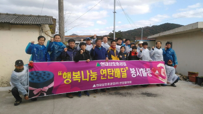현대삼호중공업 반장협의회(회장 조석현) 가족 30여명은 지난 11월 18일(토)에 ‘행복나눔 연탄배달 봉사활동’을 실시했다.