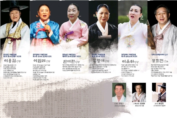 정회천 명고의 장단과 함께 전남 무형문화재 안애란 명창, 전북 무형문화재 이용길 명창·유영애 명창, 광주 무형문화재 이임례 명창·이은하 명창 등 다섯 명창의 판소리 다섯마당의 공연이 펼쳐진다.