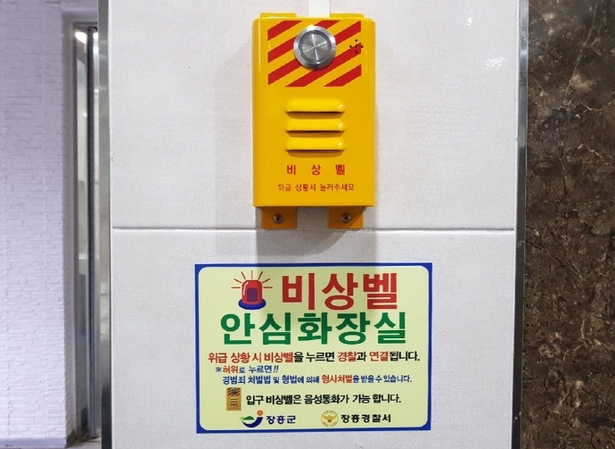 장흥군(군수 김성)은 정남진 장흥 토요시장 내 공중화장실을 이용하는 여성들의 안전을 위해 음성통화가 가능한 ‘안심 비상벨’을 설치했다고 밝혔다.