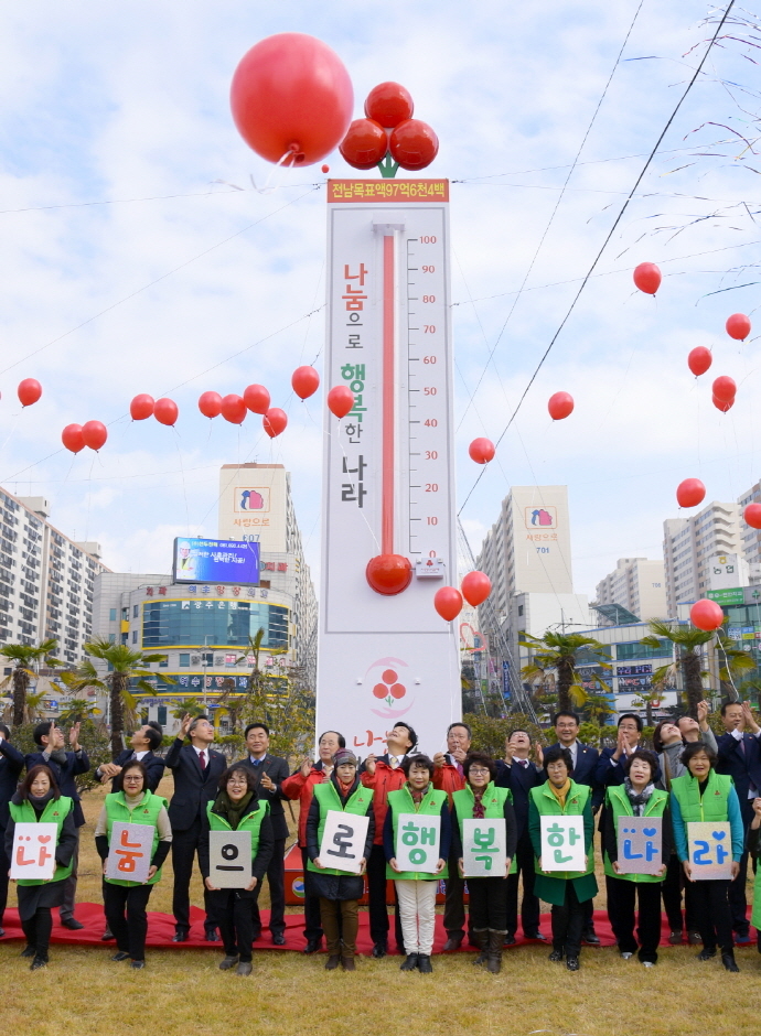 올해 캠페인은 ‘나눔으로 행복한 나라’를 구호로 내년 1월 31일까지 전남 도민을 대상으로 추진된다. 성금은 전남지역의 어려운 이웃을 위한 복지사업과 지역 공동체 형성을 위해 사용된다.