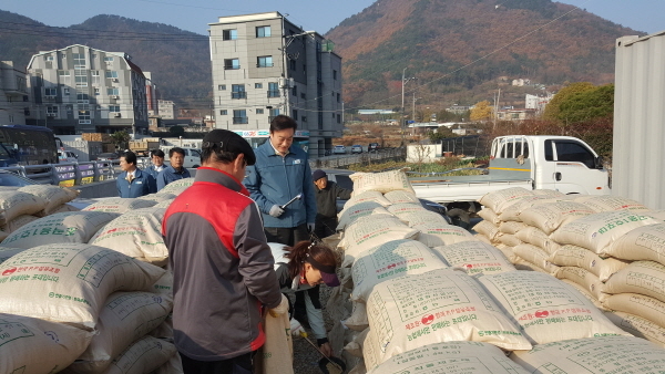 서일준 거제시 부시장은 27일 연초면 연사마을 공공비축미곡 매입 현장을 방문 농업인들의 의견을 수렴하고 격려했다.