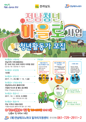 신청대상은 19세 이상 39세 이하 전남 거주 청년이며, 신청은 전남테크노파크 사이트를 통해 온라인으로 하면 된다.