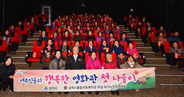 강원 삼척시는 문화향유 기회가 적은 읍면지역 독거노인들에게 영화관람의 기회를 제공하고자 28일 ‘어르신의 행복한 영화관 첫나들이’를 가졌다.