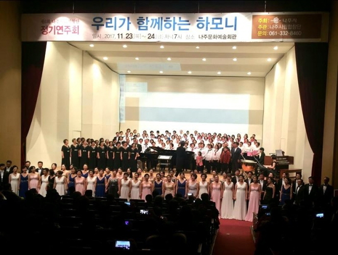 다양하고 수준 높은 공연으로 나주 시민의 문화 복지 실현에 기여하고 있는 나주시립합창단(단장 조재윤)이 지난 23일과 24일 양일간 나주문화예술회관에서 ‘우리가 함께하는 하모니’를 주제로 제 6회 정기연주회를 개최했다.