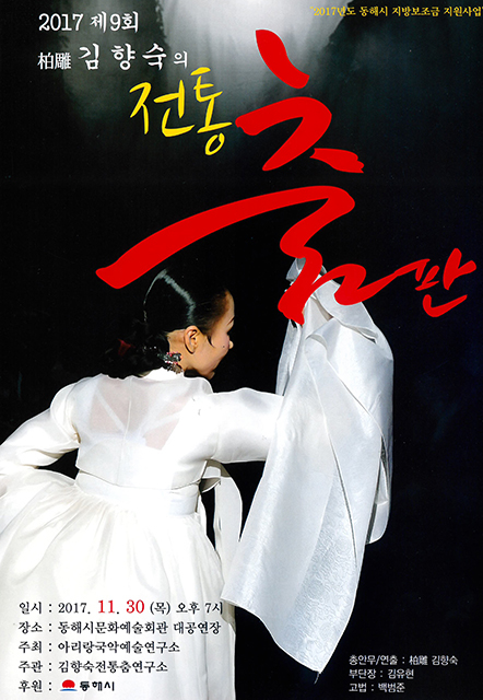 강원 동해시는 전통춤의 맥을 이어가는 우리 시대의 춤꾼, 한국무용가 김향숙의 ‘2017 제9회 김향숙의 전통 춤판’이 오는 30일 오후 7시 동해시문화예술회관 대공연장에서 개최된다.