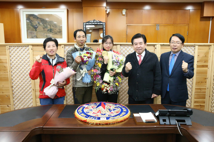 화순군민과 직원들도 뜨거운 축하의 박수로 환영했고, 군청 광장 은행나무 아래에서 기념촬영을 했다.