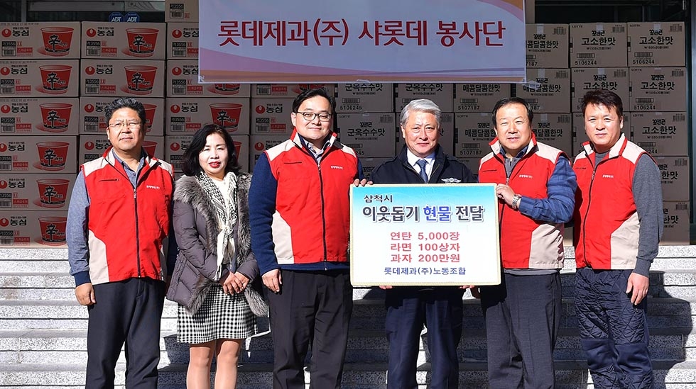 롯데제과노조, 삼척시 이웃돕기 성품전달