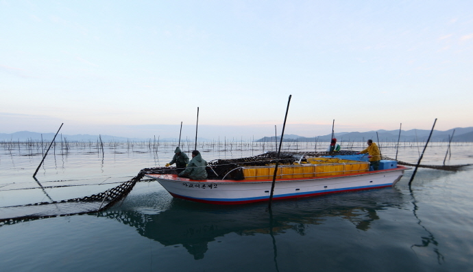 지주식 김 양식어업은 얕은 수심과 큰 조수간만의 차를 이용하여 충분한 광합성을 일으켜 성장하도록 일정한 시간을 노출 관리하여 양식하는 방식으로 친환경적이며 전통적인 양식 방식이다.