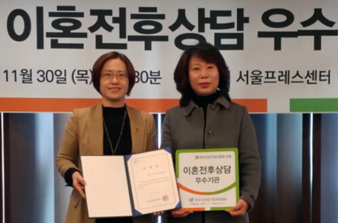 여수시(시장 주철현)에 따르면 여수시건강가정지원센터가 한국건강가정진흥원이 선정하는 올해 이혼전후상담 우수기관으로 뽑혀 지난달 30일 서울프레스센터에서 우수기관 현판을 받았다.