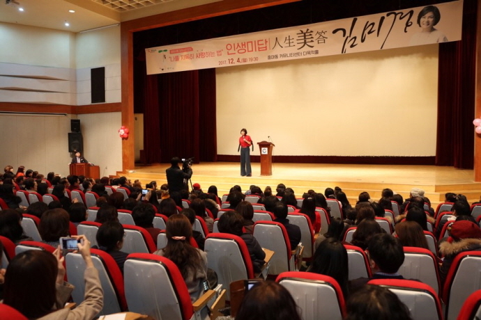 ‘나를 지독히 사랑하는 법, 인생미(美)답’을 주제로 열린 이번 강좌에는 대한민국 최고의 여성멘토로 알려진 스타강사 김미경을 초청해 진행됐다.