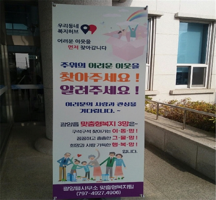 이번 조사를 위해 광양읍사무소에서는 복지담당공무원의 방문 상담을 강화하고, 광양읍지역사회보장협의체, 이장, 읍내지구대, 자율방범대 등 유관기관 및 단체와 협력해 지원이 필요한 위기가구를 적극적으로 발굴을 추진한다.