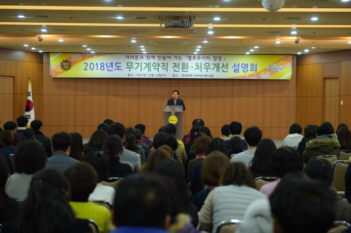 현재 장성군 직원은 총 954명이다. 공무원이 611명, 무기계약직 근로자가 133명, 기간제 근로자가 210명이다. 장성군은 기간제 근로자 중에서 상시 지속 업무를 담당하는 124명을 내년 1월 1일부터 정규직인 무기계약직으로 전환한다고 밝혔다.