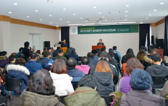 담양군은 최근 담양군여성회관 대강당에서 농어촌 민박운영자 100여 명이 참석한 가운데 민박업의 안전관리 및 친절 서비스 마인드 함양을 위한 ‘2017년도 하반기 농어촌민박 서비스 안전 교육’을 실시했다.