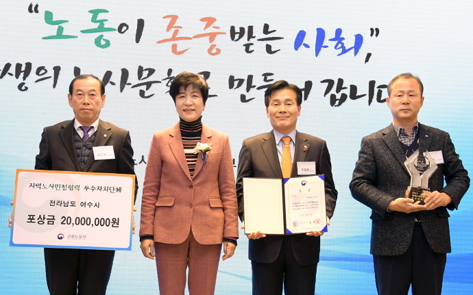 여수시는 이날 대화와 상생의 노사문화를 구축한 공로로 기관 최우수상과 포상금 2000만 원을 받았다.