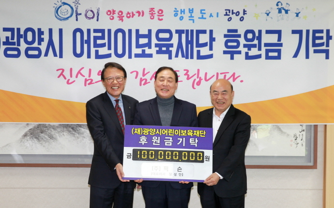 (재)광양시 어린이보육재단에 연일 따듯한 후원의 손길이 끊이지 않고 있는 가운데 지난 12월 14일 ㈜픽슨(대표 정성만)에서 2026년까지 10년간 매년 1천만 원씩 총 1억 원의 후원금을 기탁하기로 약속했다.