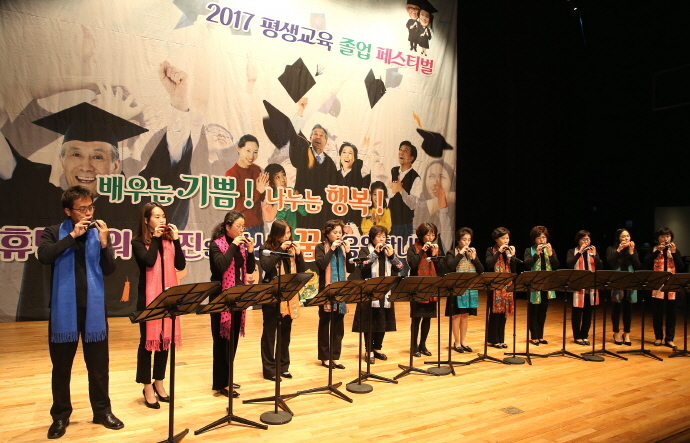 군민자치대학 음악대학 오카리나, 우쿨렐레, 색소폰, 아코디언, 합창반 학생은 1년여 연습한 연주 실력을 뽐내며 이번 졸업 페스티벌을 환호의 무대로 만들었다.