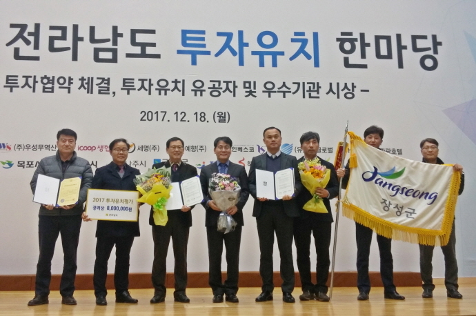 장성군은 18일 전남도청 왕인실에서 열린 ‘2017년 투자유치 대상’ 시상식에서 장려상을 받았다.