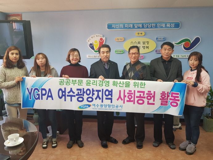 여수광양항만공사(사장 방희석, 이하 공사)는 연말을 맞아 여수·광양 지역 내 학교를 방문해 겨울철 방한 의류, 도서상품권 등 기부 물품을 전달했다고 20일 밝혔다.