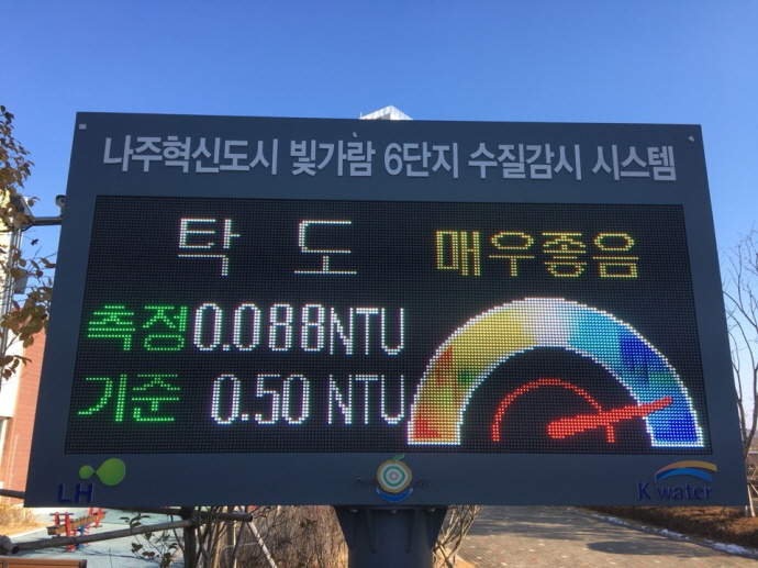 나주시는 빛가람동 LH6단지에 실시간 수질전광판을 운영하고 있으며, 주민 요구 시 수질 검사를 무료로 진행하는 등 음용 수돗물에 대한 주민 신뢰도 향상과 안전성 확보에 만전을 기하고 있다. 또한 지난 9월 25일에는 한국수자원공사와 광주·전남 최초로 ‘스마트 물 관리’체계를 적용하는 ‘빛가람 혁신도시 스마트 물 관리’ 상호협약을 체결한 바 있다.
