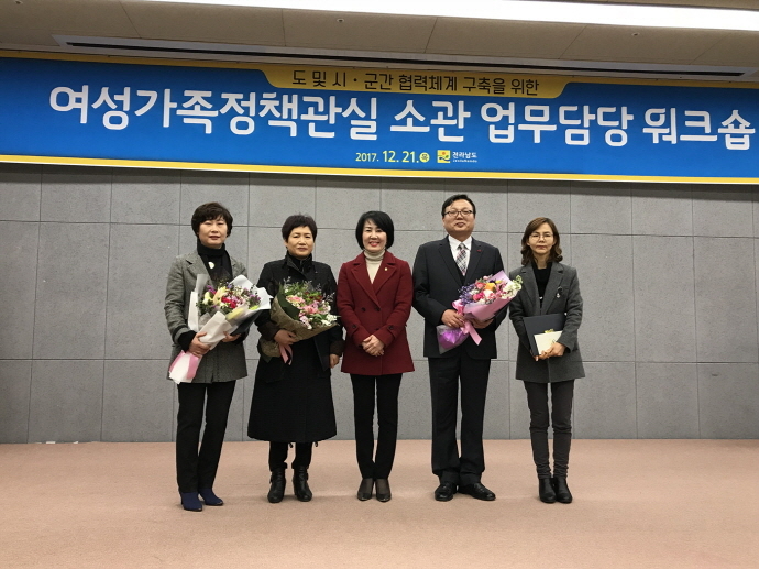 지난 12월 21일 순천만 국가정원 컨퍼런스 홀에서 개최된 전남 여성가족정책관 소관 업무담당 워크숍에서 최우수상을 수상했다.