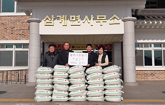 삼계면 수옥리에서 옥천정미소를 운영하는 김병수씨도 동절기 굶주린 이웃이 없으면 하는 바람으로 쌀 30포(20kg)를 삼계면사무소에 전달해 왔다. 김 씨는 30여년간 정미소를 운영하며 남에게 알리지 않고 크고 작은 선행을 해왔고 지난해에도 적지 않은 쌀을 내놓은 바 있다.