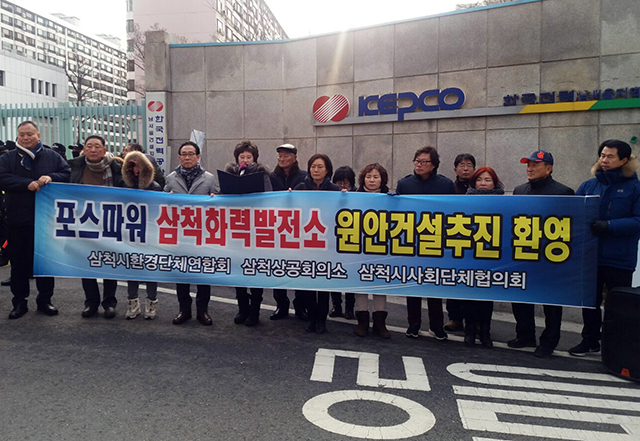 이날 삼척시 환경단체연합회와 삼척시 사회단체협의회, 삼척상공회의소는 2차 공청회가 개최되는 여의도 한국전력 남서울지역본부 대강당 앞에서 정부의 이번 결정에 환영한다고 밝혔다.