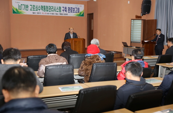 시는 지난 12월 27일 옥룡면 백운산 프라자에서 마을 주민과 관계자들이 참석한 가운데 ’IoT 기반 고로쇠수액통합관리시스템 구축사업’ 완료보고회를 가졌다고 밝혔다.