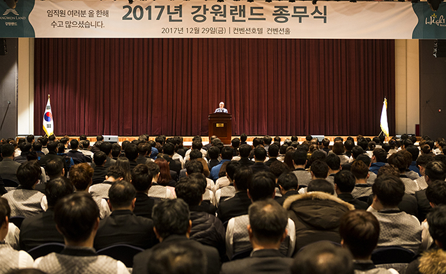 강원랜드(대표 문태곤)는 29일 오전 강원랜드 컨벤션홀에서 임직원 400여 명이 참가한 가운데 2017년을 마감하는 종무식을 개최했다.