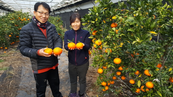 점차 아열대화 되고 있는 기후변화에 대응, 전남 강진군이 농업인 소득작물로 육성중인 ‘레드향’을 본격 수확하고 있다.