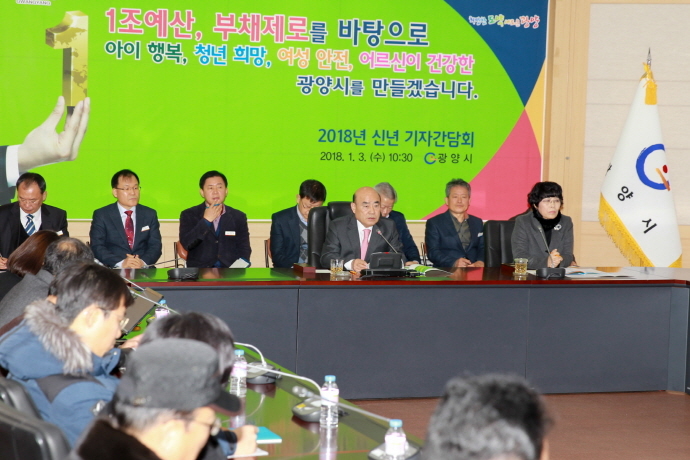 정현복 광양시장이 민선 6기 4년을 마무리하고 새로운 도약을 준비하는 2018년 새해를 맞아 1월 3일 시청 상황실에서 언론인을 초청해 2018년 신년 기자간담회를 가졌다.