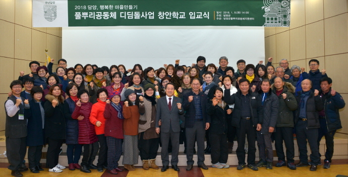 담양군은 지난 9일 풀뿌리공동체(32개) 주민 100여 명이 참여한 가운데 ‘담양, 행복한 마을만들기’를 슬로건으로 풀뿌리공동체 디딤돌사업의 첫 단계인 지역창안학교 입교식을 개최했다.