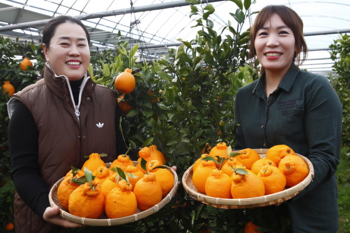 제주도 특산물로 아열대 과일인 한라봉이 진도군에서 주렁주렁 결실을 맺었다.