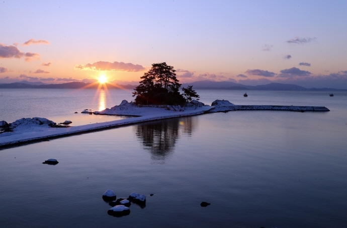 장흥군, 눈 덮인 소등섬 찬란한 일출