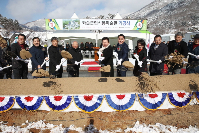 화순군은 11일 화순읍 동구리 호수공원 내 미술관 건립부지에서 최상준 ㈜남화토건 대표, 구충곤 화순군수, 강순팔 화순군의회 의장, 기관·사회단체장 및 지역주민 등 100여명이 함께한 가운데 화순군립석봉미술관 기공식을 개최했다.