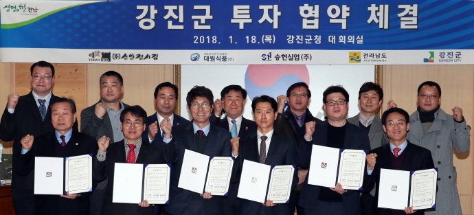 이는 올해 전남 지자체 중 체결한 첫 투자협약으로, 기업 유치 역시 강진군이 앞장서고 있다는 것을 입증했다. 이번 투자협약은 사업비 규모만 전체 252억원으로, 지역 일자리 창출은 무려 100여명에 이를 것으로 전망돼 새해 지역민들에게 가장 반가운 소식의 하나로 받아들여지고 있다.