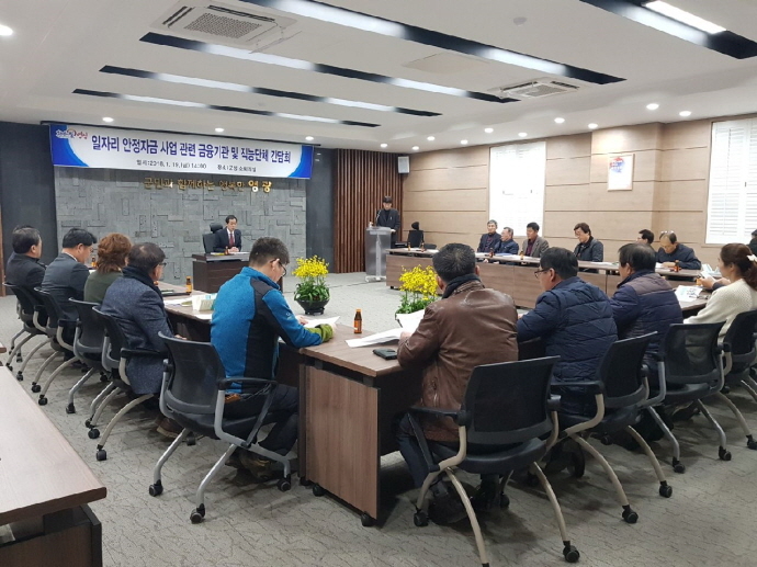 영광군은 지난 19일 군청 2층 소회의실에서 김명원 부군수 주재로 지역 내 금융기관과 농림∙어업 관련 단체, 상인회, 업종별 직능단체 임원들과 ‘일자리 안정자금’ 간담회를 가졌다.