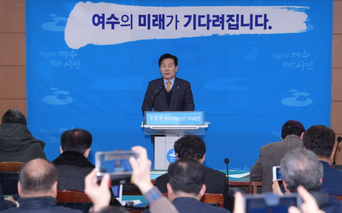 시에 따르면 23일 오전 시청 상황실에서 ‘여수의 미래가 기다려집니다’를 주제로 주철현 시장의 2018년도 신년 기자회견이 열렸다.