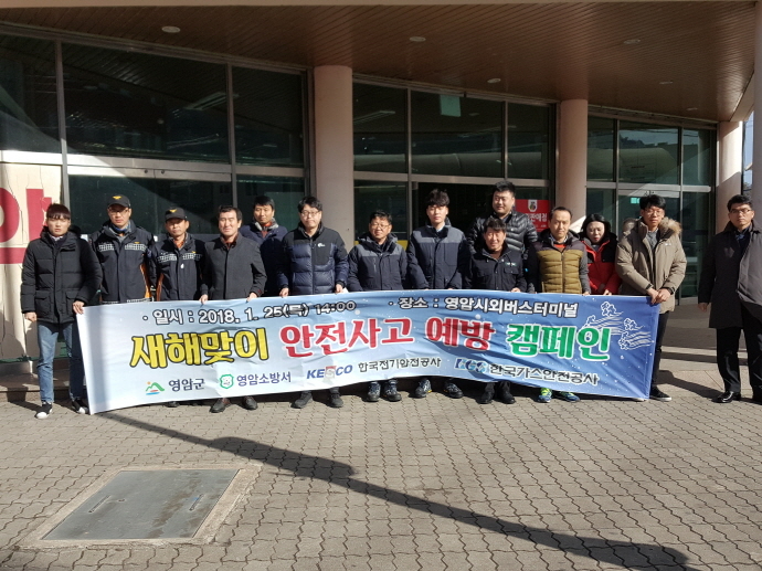 영암군(군수 전동평)은 지난 25일 제262차 안전점검의 날을 맞이하여 영암시외버스터미널에서 영암군, 영암소방서, 한국전기안전공사, 한국가스안전공사가 참여한 가운데 설 대비 안전점검 및 생활안전 예방캠페인을 실시하였다.