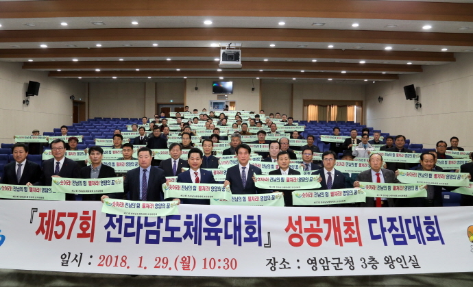 영암군에서 개최되는 제57회 전라남도체육대회 일정이 오는 4월 19일(목) ~ 4월 22일(일)로 확정된 가운데 영암군은 200만 도민이 함께 스포츠의 감동을 만들어가는 감동·화합체전, 매력있는 관광자원과 함께 즐거움과 힐링이 있는 문화·관광체전, 스포츠 마케팅 활성화로 지역경제를 살리는 소득·경제체전, 전 군민의 역량을 결집하여 영암의 위상을 높이는 성공·참여 체전을 치르기 위해 체계적인 준비에 힘을 쏟고 있다.