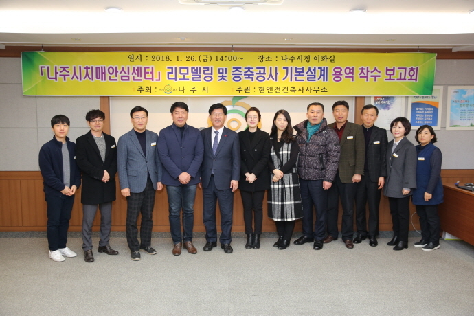 나주시(시장 강인규)는 지난 26일 시청 이화실에서 치매안심센터 증축공사 및 리모델링 설계용역 착수보고회를 갖고 센터 기본설계 방향에 대해 논의했다.