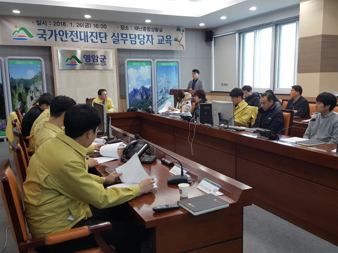 이번 국가안전대진단은 관내 건축시설·생활여가·환경 및 에너지 등 7개 분야 47개 유형에 대하여 안전점검을 실시하며 원활한 진행을 위해 안전대진단 실무 담당자들을 모아 군 자체교육을 실시하였다.