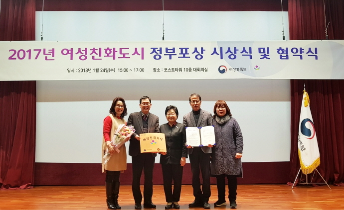 장성군은 최근 서울중앙우체국 포스트빌딩에서 열린 ‘여성친화도시 협약식’에서 여성가족부와 여성친화도시 조성 협약을 체결했다. 이날 협약식에는 김영권 장성군 부군수를 비롯한 장성군 관계자, 정현백 여성가족부 장관을 비롯한 여성가족부 관계자들이 참석했다.