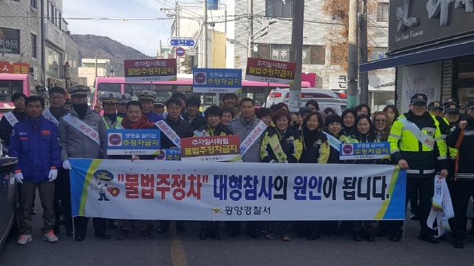 광양경찰서(서장 박종식)는 30일 오전 11시 주정차 근절 특별관리구역으로 선정된 목성리 1028-2(구 축협골목)에서 가두행진 캠페인을 실시했다.