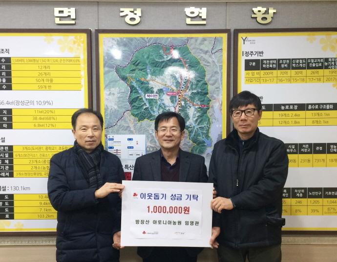 3년 전 장성군 북이면을 제2의 고향으로 선택해 성공적인 귀농생활을 해오고 있는 방장산 아로니아 농원 임명관 대표가 이웃을 위해 1백만원을 쾌척해 화제가 되고 있다.